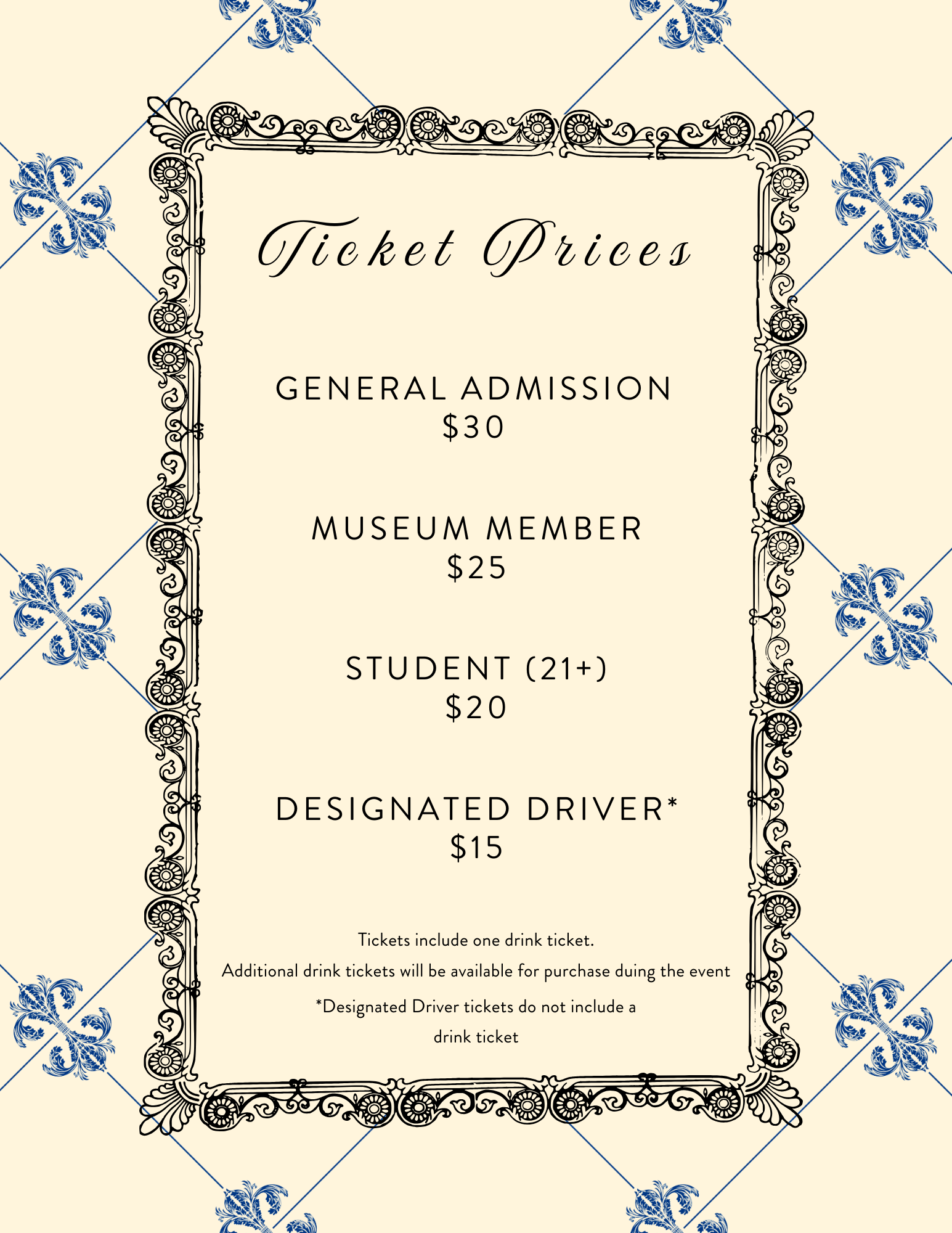 *Designated driver tickets do not include a drink ticket